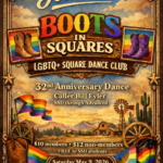 You are welcome to stop by on any regular dance or class night and talk with club members about our activity. There is no charge to stop by and find out what Gay Square Dance is all about. (HINT: It’s NOT your Grandma’s square dancing!)